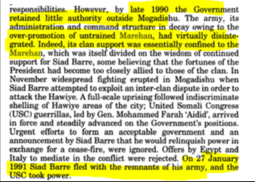 I wouldn't care about Barre being ran out if the USC and later warlords didn't constantly make Somalia a living hell but here we are. Of course Barre will somehow get blamed for events in the late 90s and even today despite the man dying in 1995.