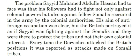 Also another thing they always frame him as if he was attacking other Somali clans when he was in actuality attacking British positions. When he refers to a specific group in his poems he is talking about the specific ones that collaborate with foreign occupiers not the whole group because he recruited Somalis from all clans and had broad base of alliances.