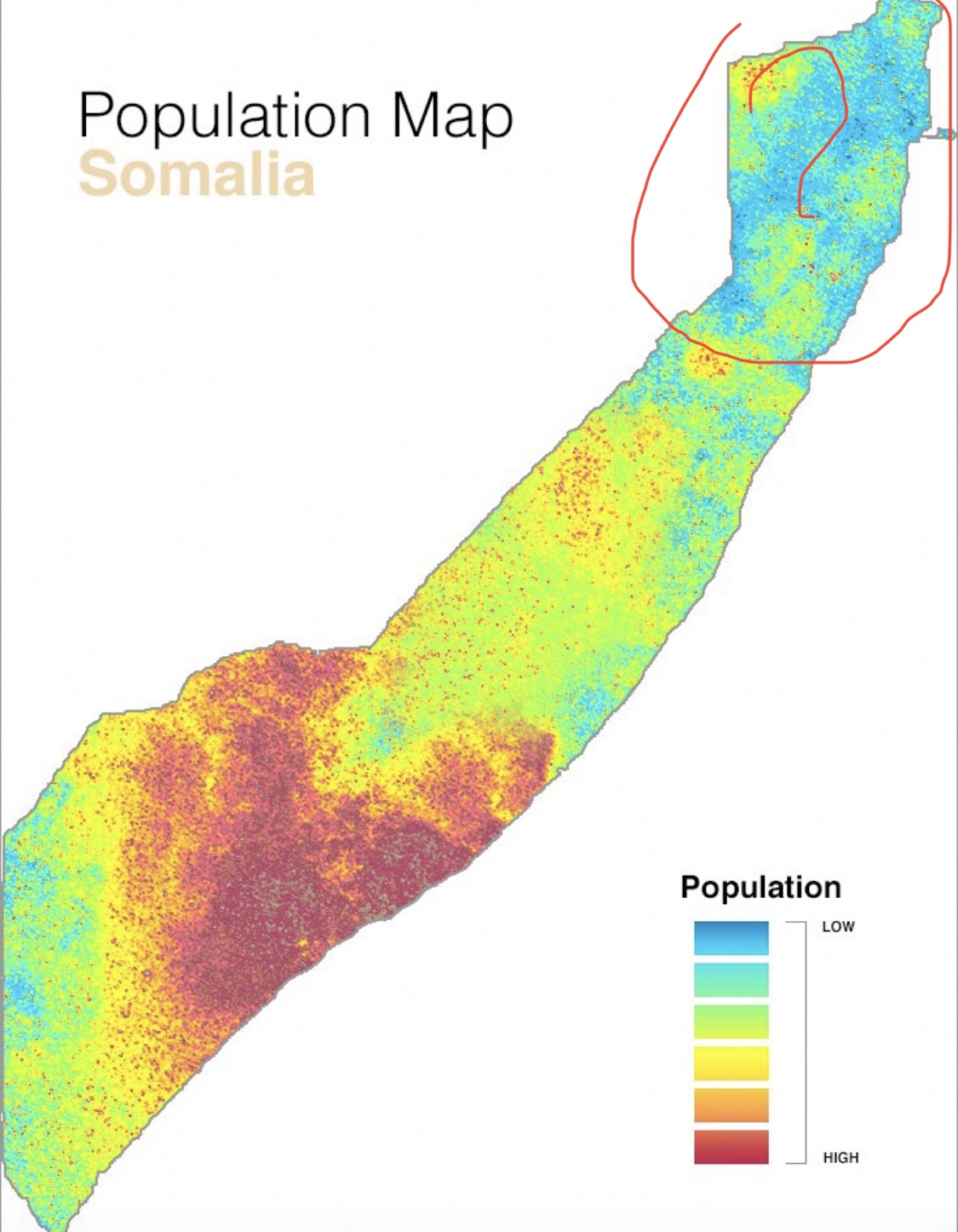 U clueless about how population density works buddy. Even the darod land in far south is as blue as the Indian Ocean. He himself admits “Somali population is 80% rural not cities dummies”