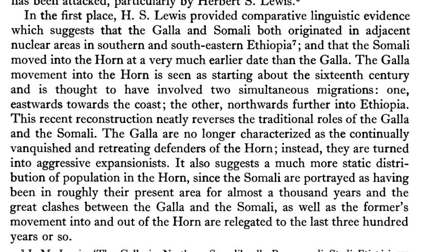 This was a political article written by an Oromo nationalist. It was categorically refuted by Schlee, who showed that Garre, Gabbra, Sakuye and Rendille all adhered to a proto Somali camel culture before the Oromo migrations. Northern Kenya was settled by Madanle, a Somali tribe. Forget these groups like Rahanweyn, Garre, Tunni and Dabbare-Somalis-who you are trying deceptively trying to deny their somalinimo- groups like Jiddu, Baiso, and Elmolo are more closer to Somali than Oromo. Somalis made 2000 year old paintings along Harla caves, and you are out trying claim Dir medieval Islamic history as Oromo lol. You have cairns in Northern Kenya and burieals predating any Oromo presence in the area. AF may also has no Oromo substratum which shows you Oromo presence in southern Somalia and northern Kenya was recent and short lived. Basically, everything from linguistics, archaeology and genetics disagree with oromos predating Somalis anywhere in northern Kenya or southern Somalia. You have Somalis trading with Greeks in antiquity along the southern coast. 🤣Oromos were in the mountains during those times, abti.