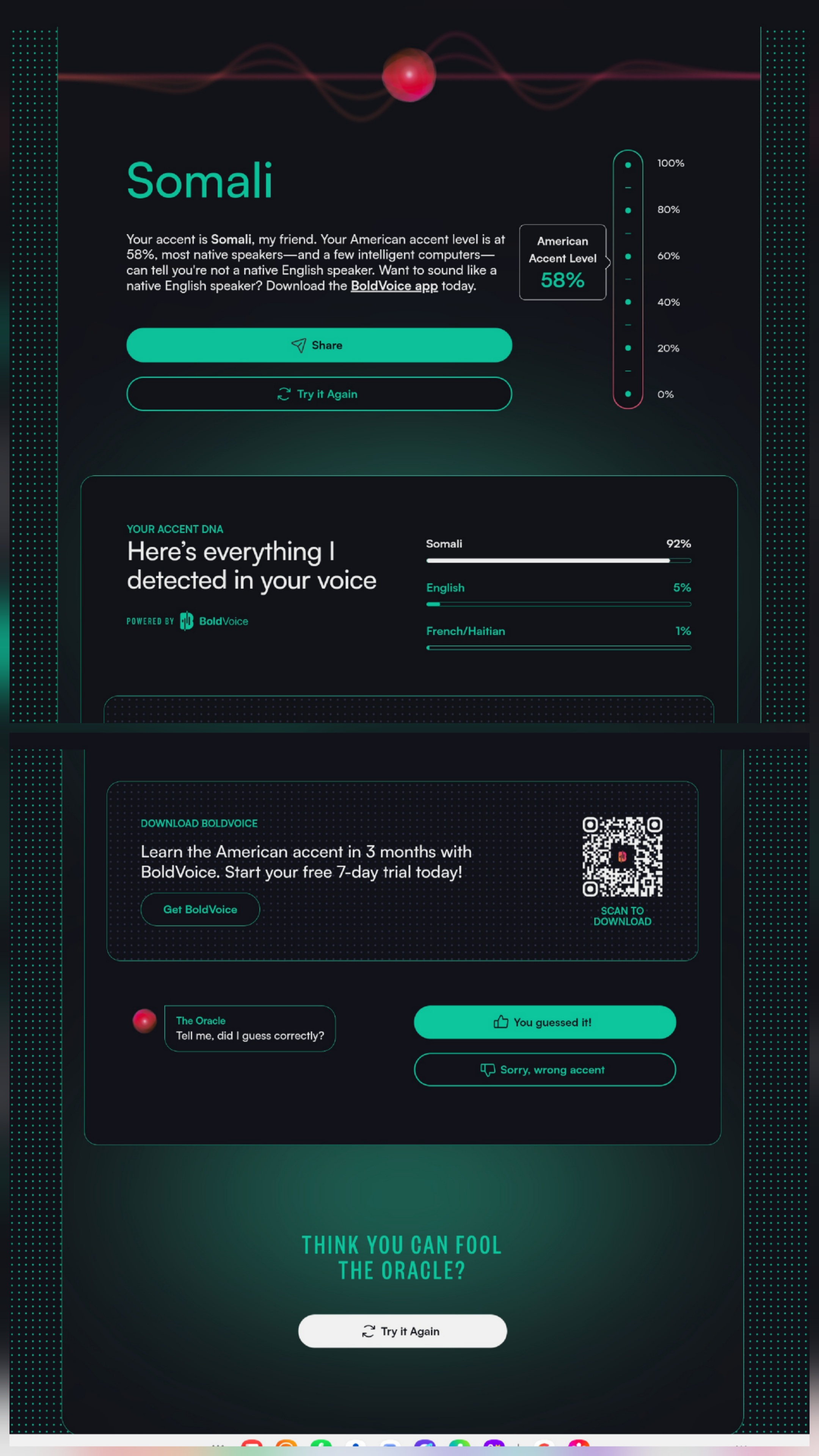 Can anyone else just tell if a person is Somali just by their voice? It's not even an accent, it's like a slight undertone that just lets me know.