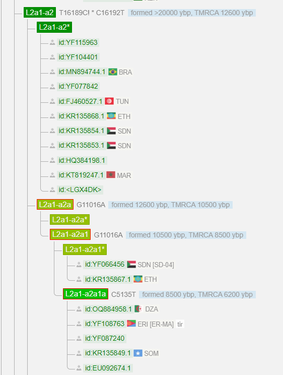 It's very fascinating because this mtDNA sub-clade segment covers better sub-structure resolution for the migrations of the the E-Y10550 that is left at a basal position. This means in the worst-case scenario if E-Y10550 came yesterday to the Horn of Africa (which I don't believe), I would still be correct in my deeper assessment, revealed by re-affirming mitochondrial DNA deep population assessment.