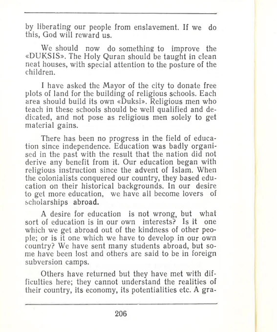 He favored the Wadaads (Religious men) bringing literacy to the masses in the form of Islamic education and he’s seen condemning sectarianism, and calling for the construction and advancement of Duksi’s (islamic schools)