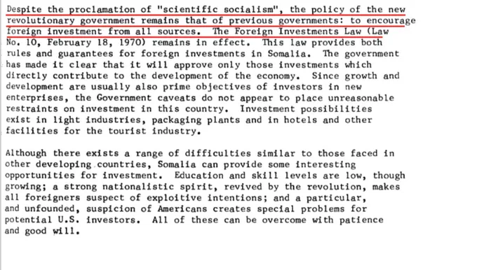 . In 1976 Siyaad Barre stated the following in a speech regarding private investment.