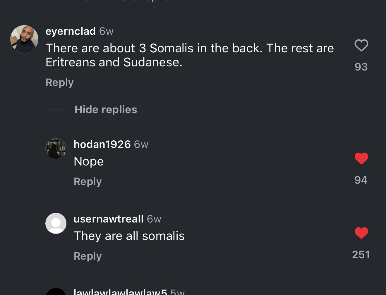 Bro stop the begging shit it’s so disingenuous. Somalis and Eritreans r cool irl we don’t need you to reinforce the idea every day cos some effeminate dude got his feelings hurt. There’s a very contagious anxiety on this forum and you’re catching it too now. Be a man broThis is misinformation, and your screen proves nothing.
