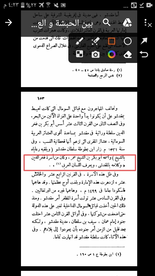 You're claiming shariif Caydaruus book isn't a source when you're using his sons book, and that page just further proves my point, there were two centuries in-between Abubakar bin Fakhruddin Al Qassani and Abubakar bin Shaykh Omar. Also if you actually read my source you'd see that shariif Caydaruus mentions at the beginning that he found it in a manuscript written by Shaykh Muhyiddin bin Mu'allim Mukarram which was in the library of his son Shaykh Abubakar bin Shaykh Muhyiddin.Sharif Aidour's book is not a sourceView attachment 284790