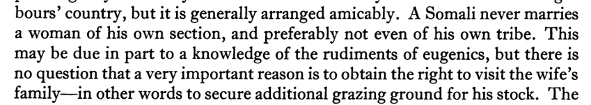There was always Somali-specific ancestry structuralism no matter what clan or geographic placement at the exclusion of other groups. Somalis break the tendencies characteristic of the whole region basically only conforming to their own ways. So again, this is impossible without an ethnic conception... This discrimination is the quintessential definition of a coherent group you can ever find and it had nothing to do with colonialism.