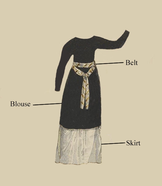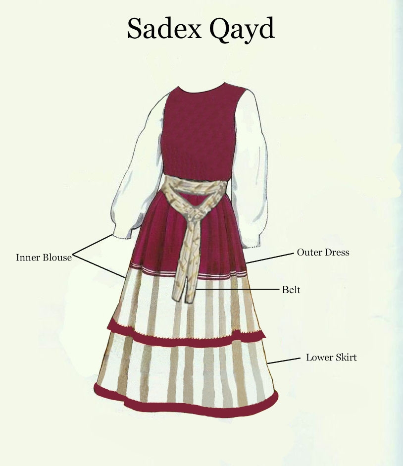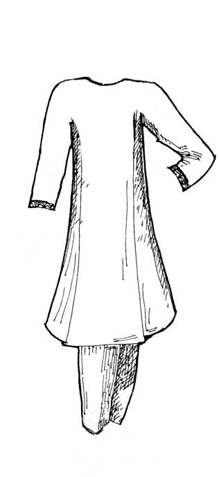 The name of this outfit is currently unknown. It may be beneficial to consult Somali linguists to either discover its traditional name or create a culturally appropriate one. It is typically worn in everyday life and casual social occasions. The design consists of three main components:
