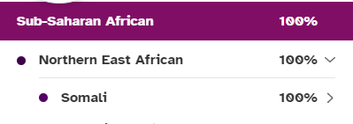 We're talking about indigenity to the Horn. It's pretty clear you're way off the mark. The OP is MJ and most are not admixed unless their family history deviates from most. He has a maternal relative that would have Southeast African admixture because it's found among NFD dwellers. They are generally more Subsaharan than Somalis from Somalia proper (but not by much). He has no recent Semitic ancestry either which usually tends to co-occur with Bantu. I don't think you know what you're on about. We are not discriminating just clarifying. His haplogroup is also E3b, not E3a. I think he knows the source as it was mentioned.