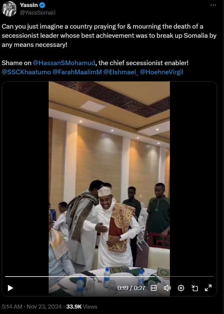 Does the separatist and collaborator with Ethiopia deserve to be honoured by the Somali state?