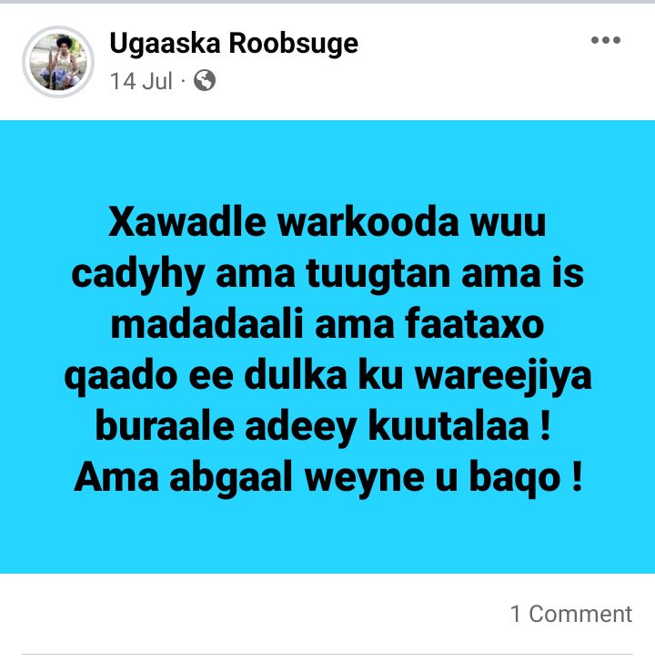 Agoonyar waa ku sastay laangaab. Scouring AG fb groups and obsecure AG profiles its sad.
