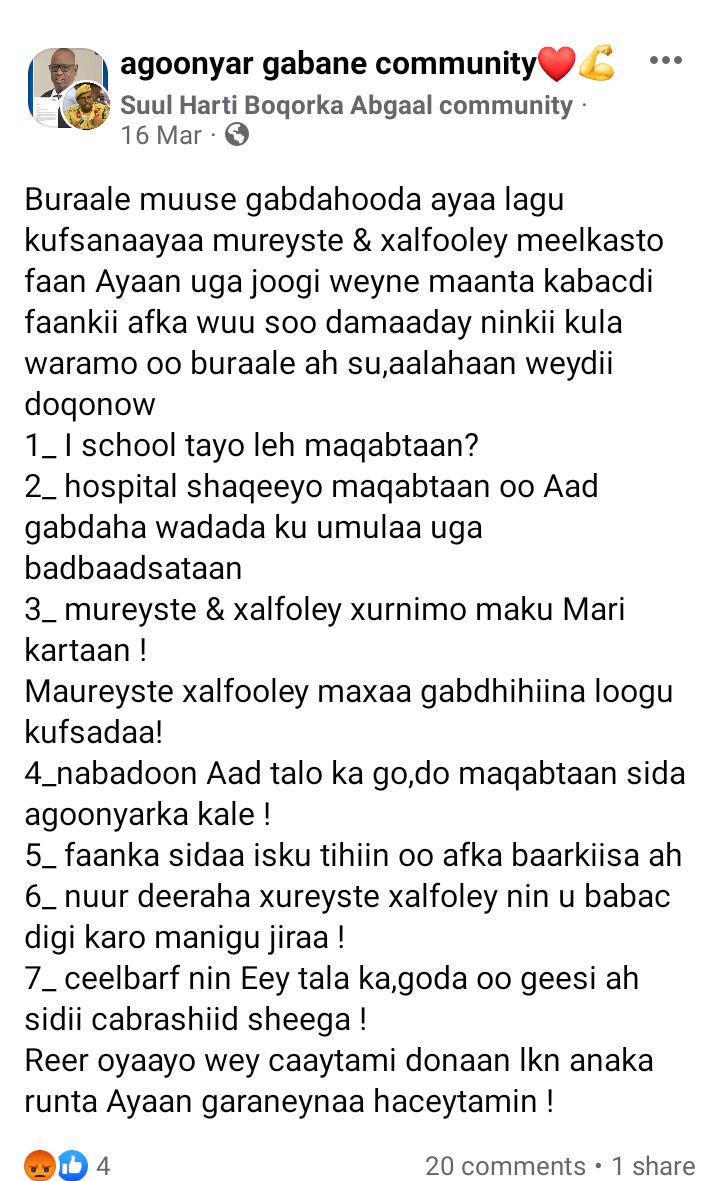 Let me also point out everything you post mentions Buraale Muse which 1 sub of AG lol isma haysataan AG duliyahow