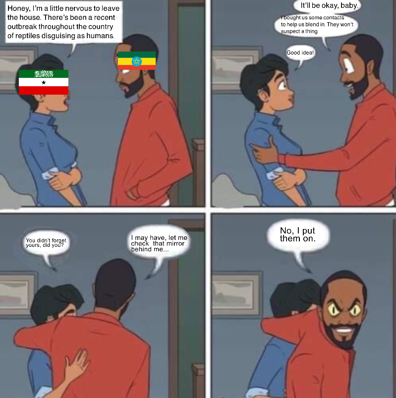 Don't worry, I'm just protecting you, or else you'll end up as an Ethiopian puppet state, just because Ethiopia nurtured SNM doesn't mean they care about you, if you have ever seen how Ethiopians treat their dogs, you'll understand.