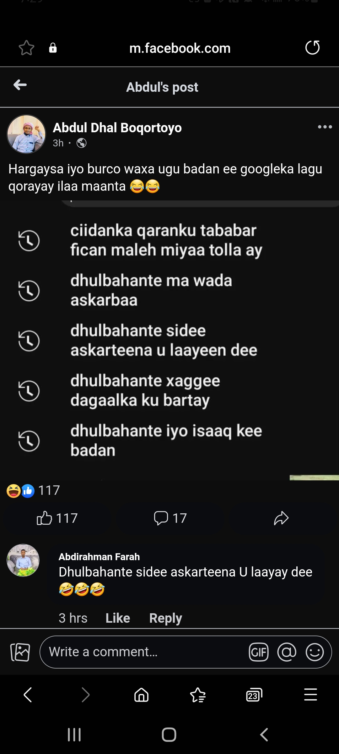 im not bringing nothing fool. im responding to a comment talking about HAG and shabaab. stop picking and choosing when you want to stop tribilist talks.refrain from crying and take it up with the one who brought up konfuur politicsWhy do you assume one daarod sepaks for us all? Does one hawiye speak for the whole clan and can I choose that hawiye? This thread is about Las Caanod don't bring Koonfur politics unless it actually pertains to the subject. This is chasing after a whole tribe it has nothing to with the SNM vs Las Caanod battles that we see currently.