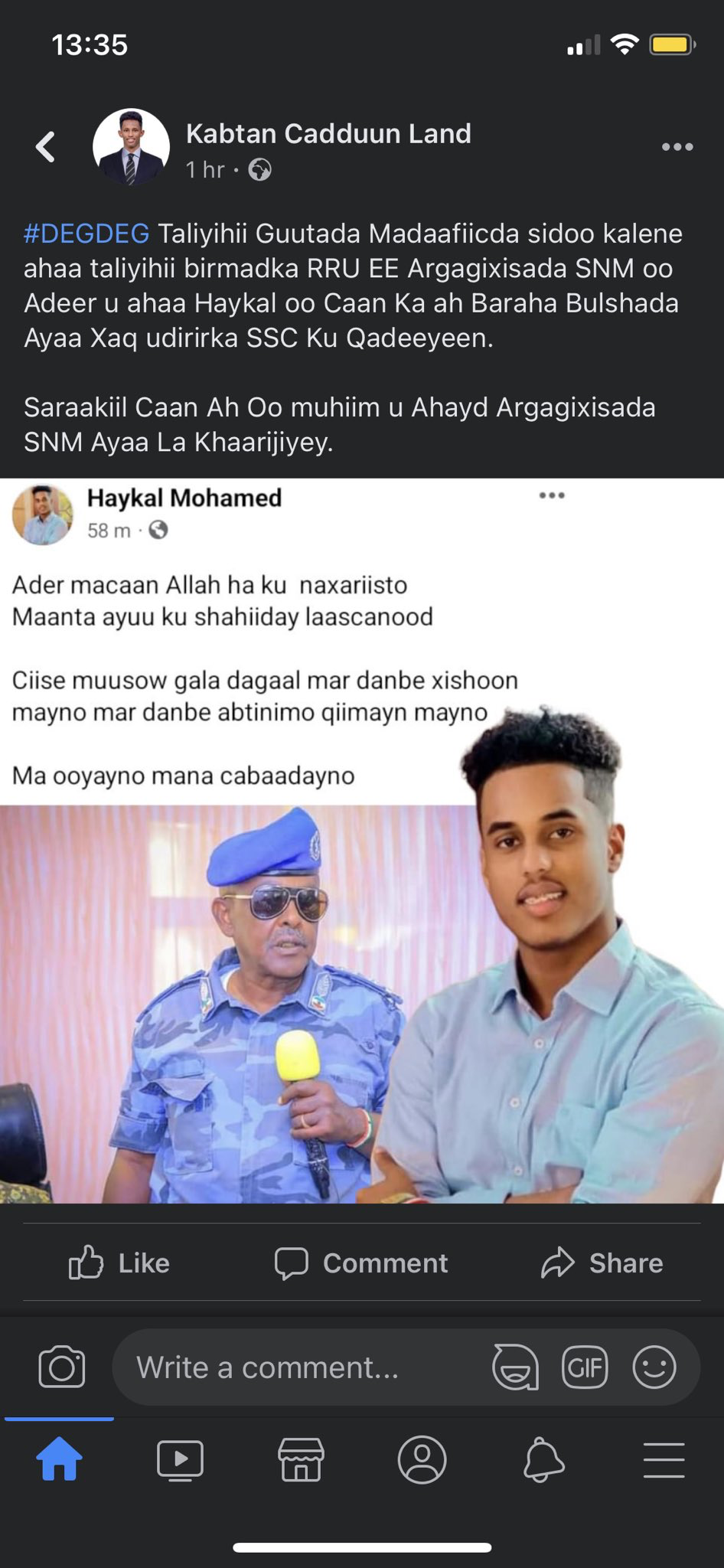 @SirLancelLord the rumours of pro SLand jamac siyaad forces switching sides is false also. Aun to the dead on both sides.