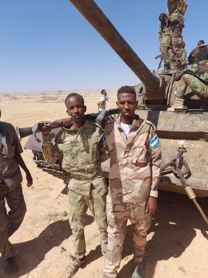 Wiilasha DirQoolas ee Cumar MaxamuudBagaax Jigis Afcade of Mudugs birjeex unit with a captured tank. View attachment 289243