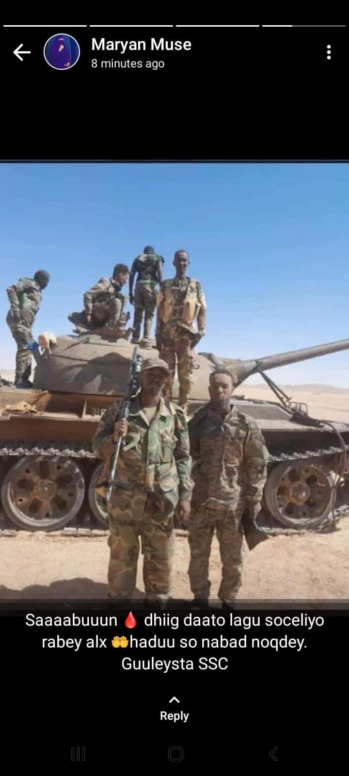 One of my relatives who was a doctor at goojacade hospital He told us this and he is now in Oog And they will not stay there, they don't have the morale to fight, the man who survived from Lasanod today The only thing he wants is to be alive . They will also withdraw to caynabo