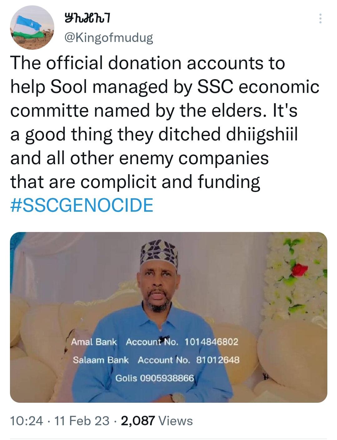 Rather odd though, as this is how reer Sool are responding to the events unfolding in Las Anod. It speaks volumes as to the reality on the ground. Cruel much.