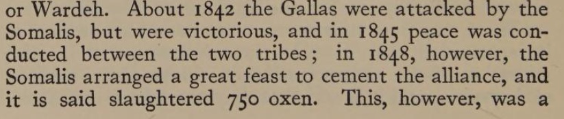 These ancient oxen feasts existed until pretty recently when the peace was brokered (really a defeat for the Oromos) with 750 cattle eating: