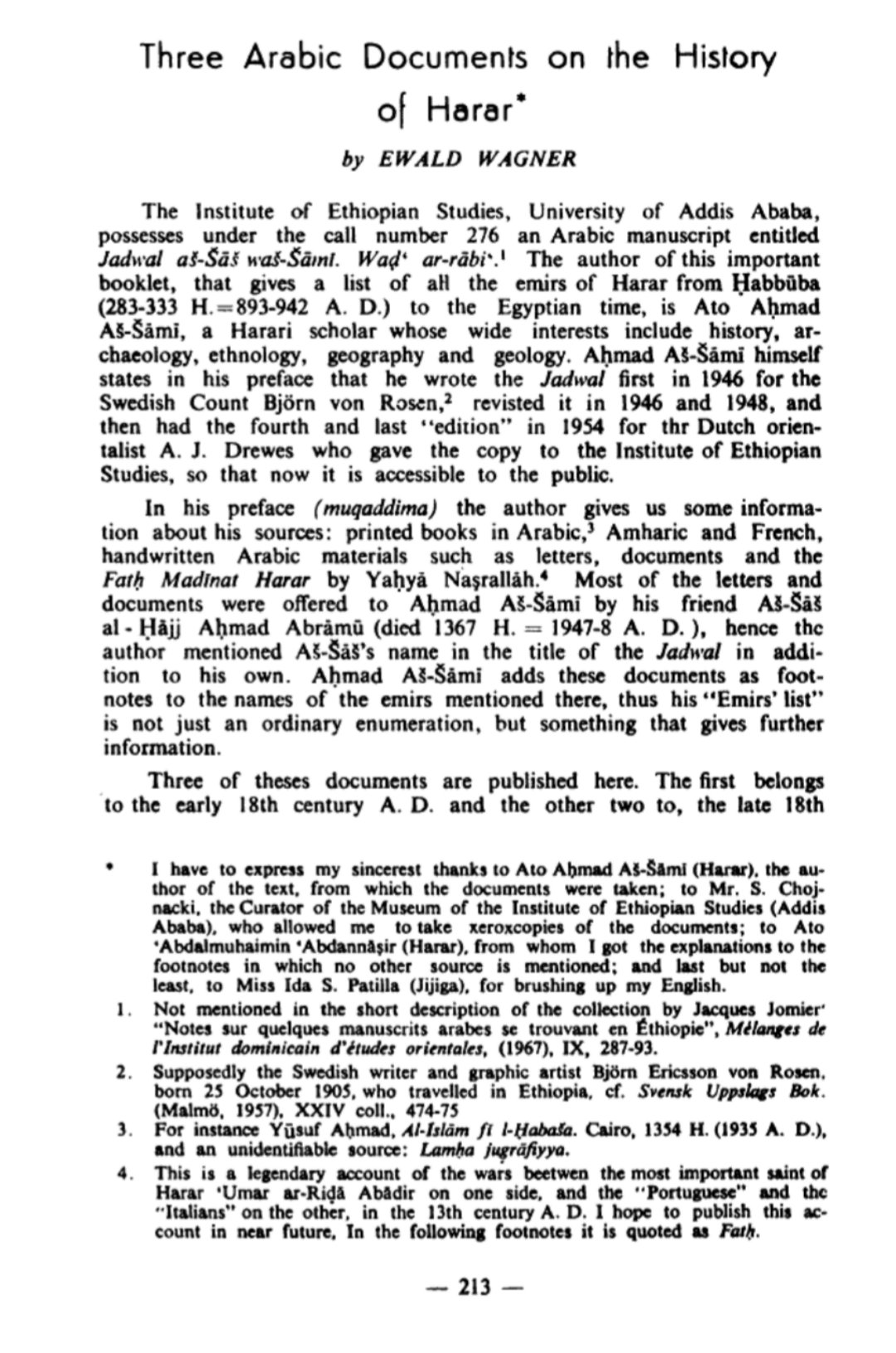 It’s a 1k page long monograph exclusively dedicated to the imam funded by emperor Haile Selassie. It was non other than Tekletsadiks who was handed the responsibility to find out everything about the imam and nationalise it. Cerulli, Burton & Paulitschke are all referenced by Mkuria he compares all foreign chronicles as well as medieval Sarsa Dengle’s and Portuguese chronicles! Ewald Wagner who also worked with Ahmed Sami was one of 3 foreign authors in Ethiopia, alongside Cerulli & Paulitschke, Mekuria uses the work of all three, they produced an important monograph of nearly 1K published pages about Gragn that is accepted in the capital state university.