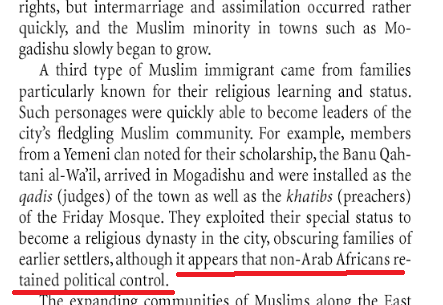 Thank you. As I said I'm open abour changing my mind . If I'm not mistaken arab contributions were also exaggerated on the swahili coast, historians now believe that many of the Shirazi and Arab "founders" were actually local muslims who wanted to take pride in prestigious linesge from established muslim communities.Do you honestly believe a foreign ship can come and settle into the coast to establish their own settlement? You make it seem like there was no settlement before their arrival. Trading cities have existed throughout Horn of Africa for thousands of years.