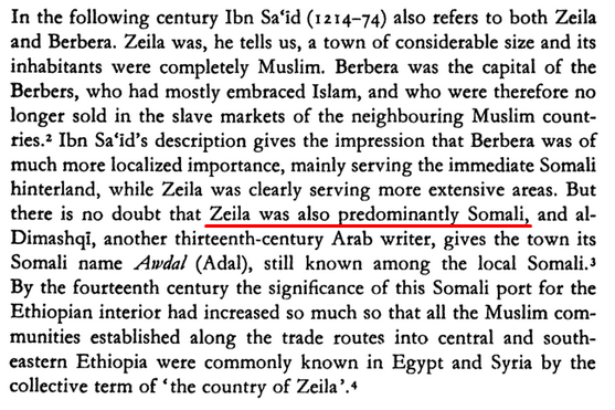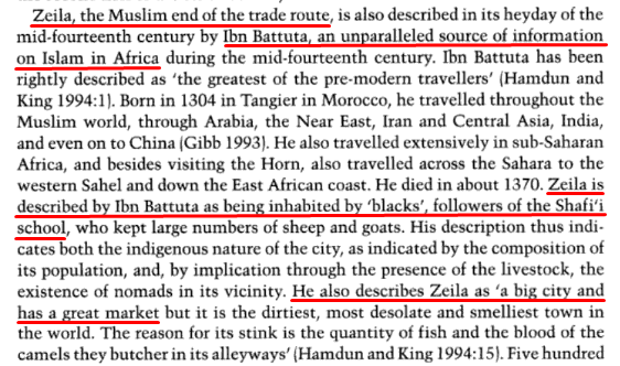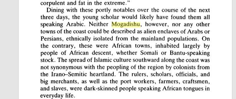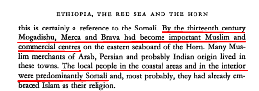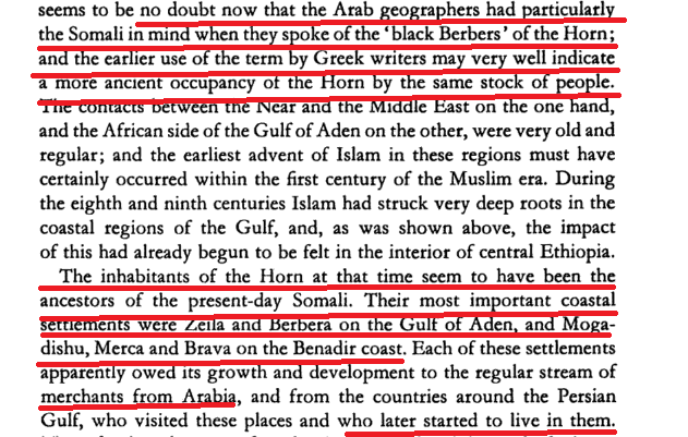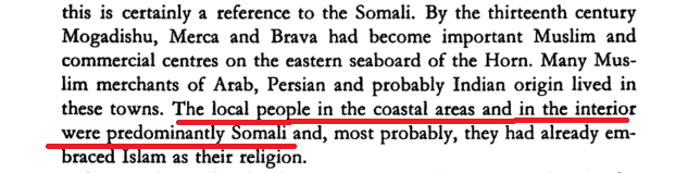 So it is established by this book that Somalis, and our ancestors lived in the Horn of Africa and had trading cities as noted by Greek and Arab cartographers. It is also known that 200 years before Ibn Battuta came to Mogadishu and described it as a predominately Somali city ruled by a Somali Sultan, al-Idrisi described Merca, Mogadishu and the settlements inbetween them around the 'Nile of Mogadishu' to be predominately Somali, infact It is also established that Mogadishu was one of the original coastal settlements of the Somali people. 100 years after that and before Ibn Battuta came, another Arab cartographer described it as the homeland of a Somali people.