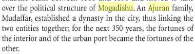 Anyway What can you tell me about the whole "somalis came to mogadishu in the 17th century and killed the muzzafar Sultan" that Grant is talking about? I also read from Cerulli about the fact that Hawiye were not allowed in the city after dark and that they became dominant only after killing the arab rulers. What's your opinion on what grant is saying? I trust you as a fairly knowledgeable guy on this website.
