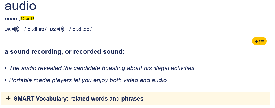 :ohhh: Usually i use wiktionary which labels the plural it does here as audios The cambrige dictionary website sucks. But you right