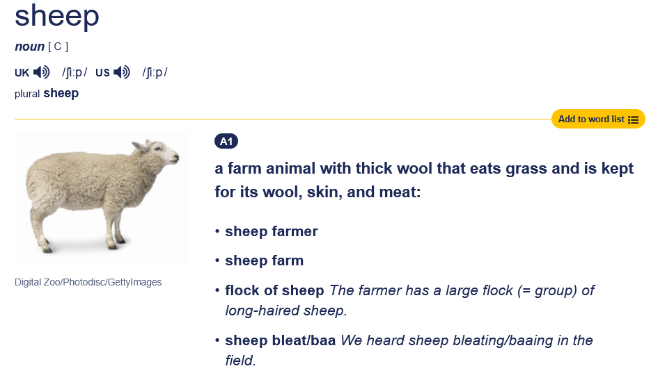 Sheep is an irregular plural which means the plural doesn't use s or es. When the plural is irregular the dictionary makes it very clear by writing it out.
