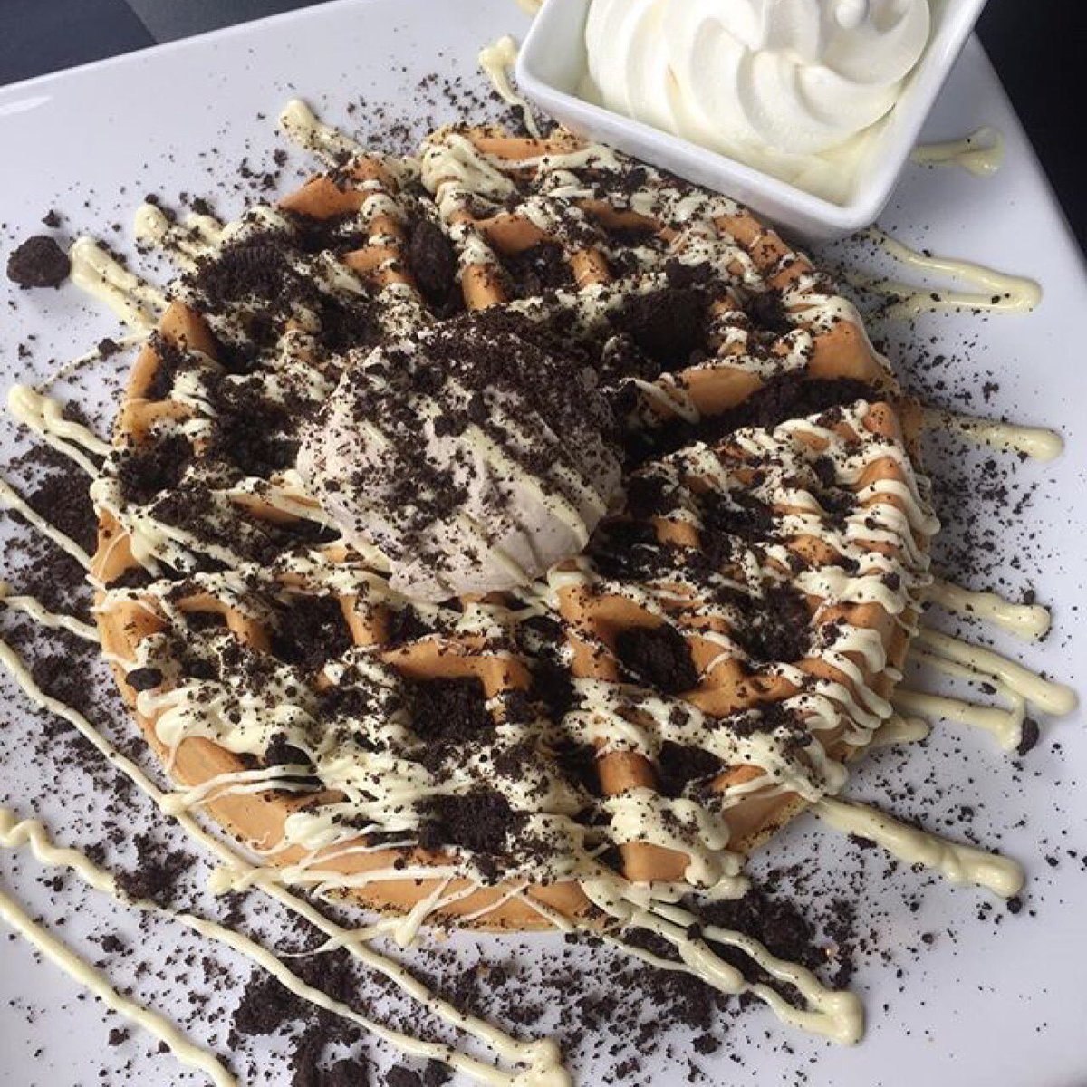 Creams oreo waffle and for breakfast
