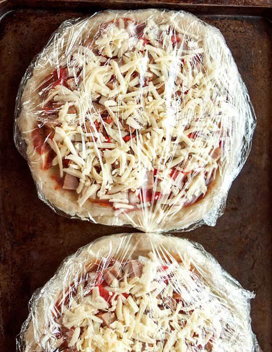 Frozen pizza with garlic+burger sauce