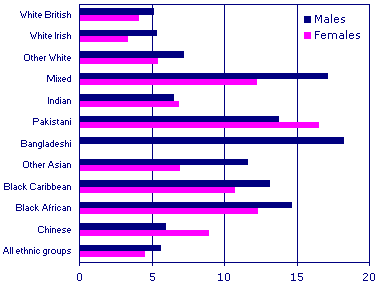 Unemployment amongst Somali men is believed to be around 65%. As you’ll see from the diagram, this is many times higher than any other ethnic group.