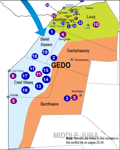 It is simple because Gedo is not 1 clan based region but diverse one. For example the district capital of Ceel Waaq district (Ceel Waaq aka God's well) is majority Garre while the Dir have a strong presence in Luuq. There is also a large Rahanweyn population in Bardheere district.