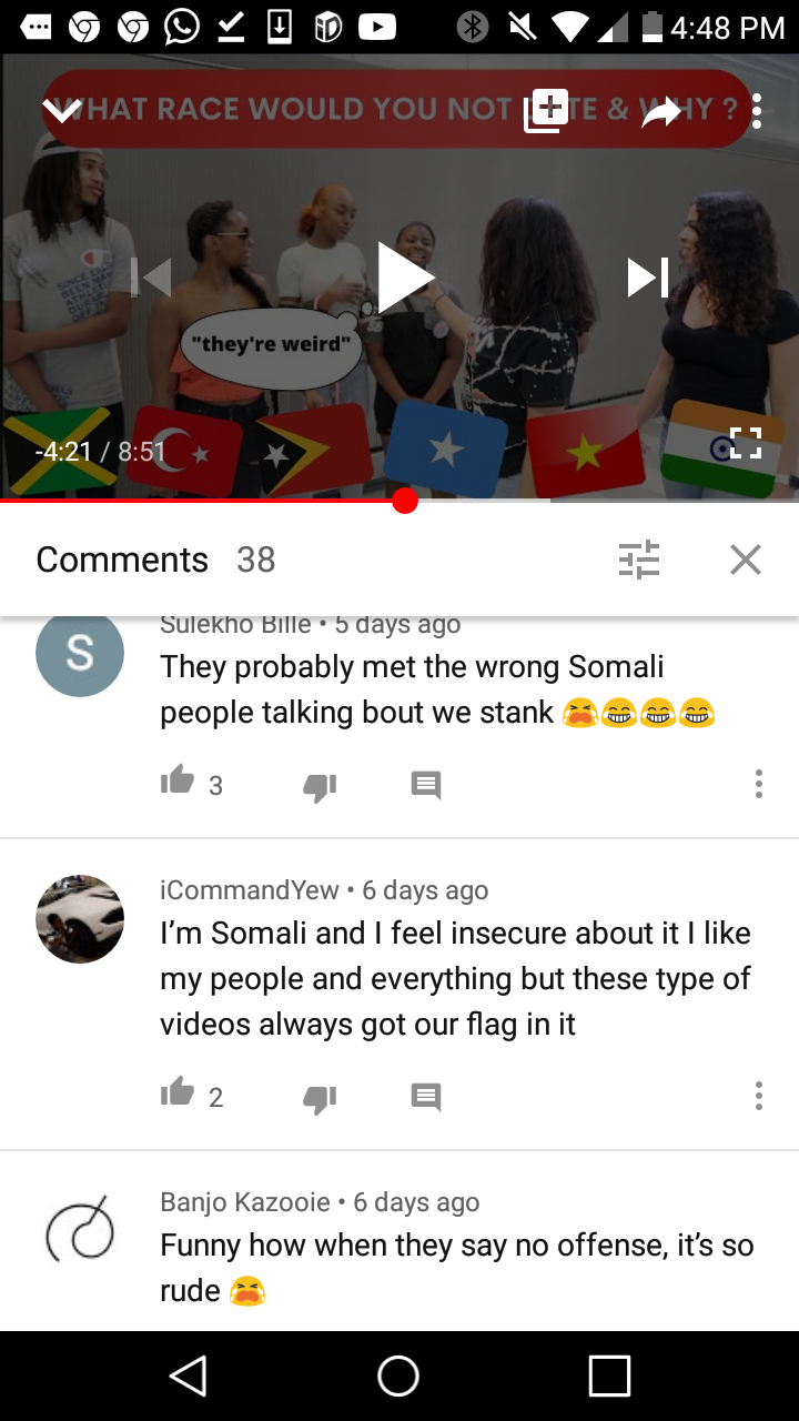 Lol that’s her preference though. Unless Black girls are your type I wouldn’t trip about it.4:18 you know you are done out there when an Ape looking women says Somalis stink.