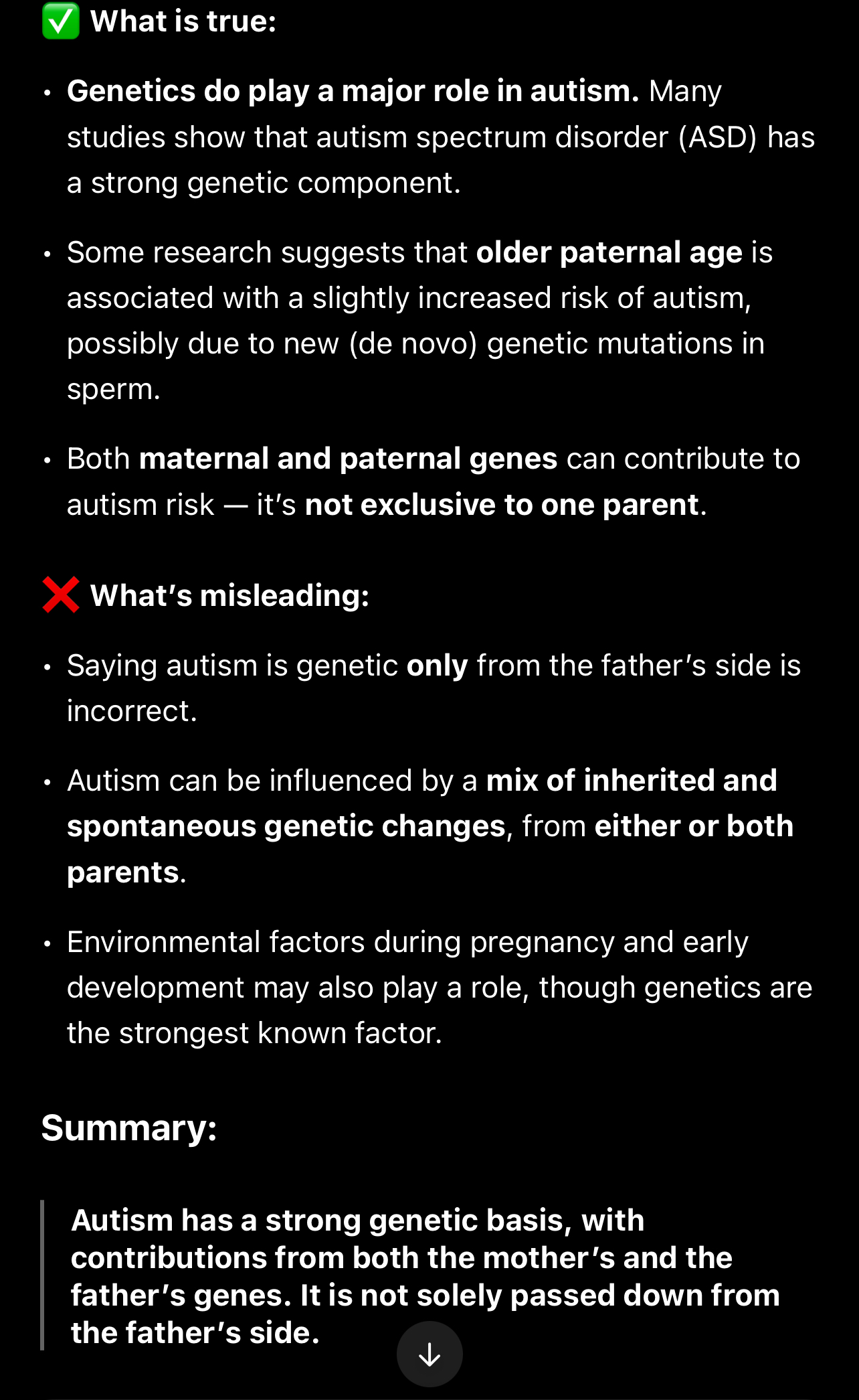 The text you're quoting states kids are more likely to have autism if their parents siblings do and it’s a bit more likely if it’s on the mothers side. :childplease: