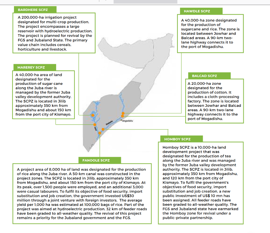 This is what has largely been done in Ogaden, where they managed to boost incomes and reduce prices in the process. Hopefully, Somalia will continue to follow through with the planned projects shown in the graph, especially the import-substitution aspect focused on wheat and rice, agro-processing, as well as critical infrastructure like highways and roads. I’m not entirely sure how much of an obstacle Al-Shabaab poses to these plans, but the direction is clearly laid out.