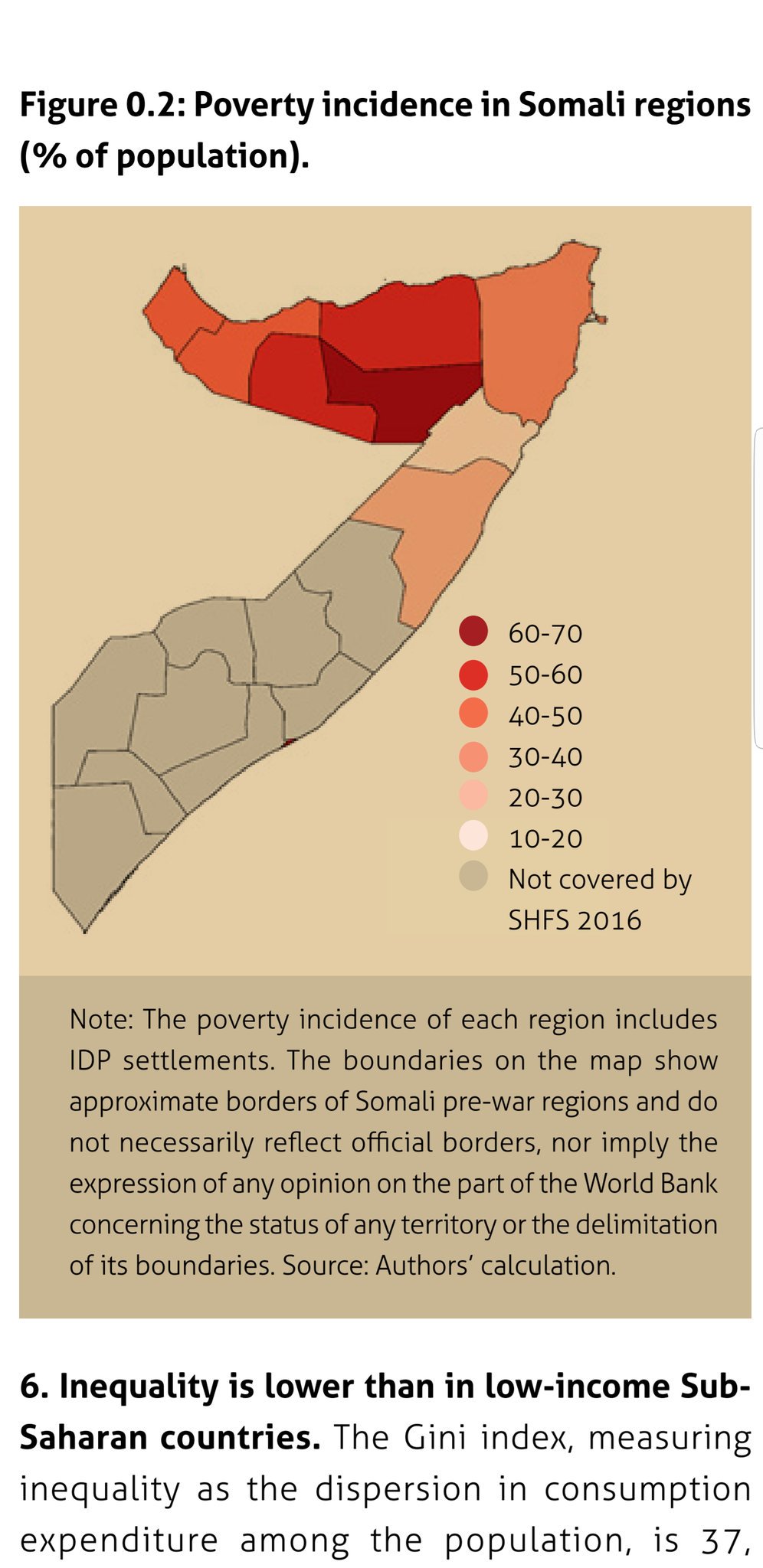 Somali regions have lower poverty rates than Kenya and Ethiopia, higher income as well and also experience lower levels of inequality. Poverty is mostly concentrated among IDP populations.