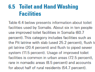 Just to give you some contrast: fast forward to 2023, according to the budget household survey, most Somalis have access to basic services:
