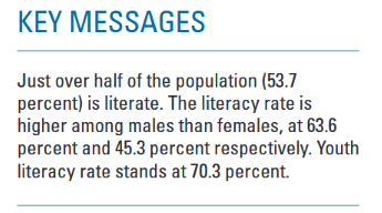 Literacy: 70% of youth. The youth between the age of 15-30 are 70% of the population.