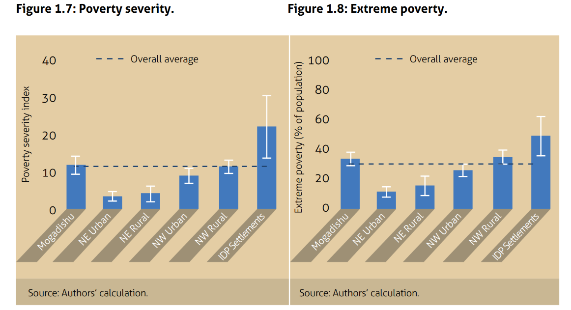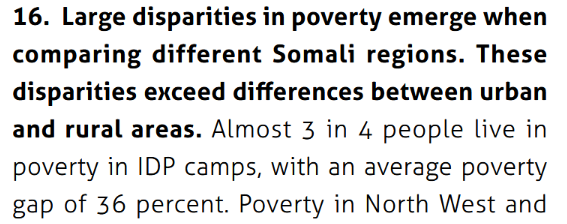 This report below is from 2016, and back then both the Northeast and Northwest regions had lower poverty rates than Mogadishu (Xamar). I’m using this because it’s the only one that separates the IDP population from the general population.