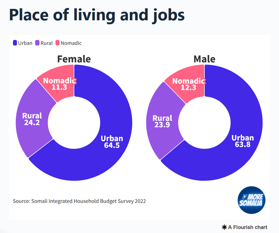 This shows there’s strong market development and wealth accumulation happening because communities aren’t stuck as rural forever and there is expansion happening. Most Somalis about 63% now live in towns and cities, with fewer people remaining as pastoralist's or in rural areas like villages.