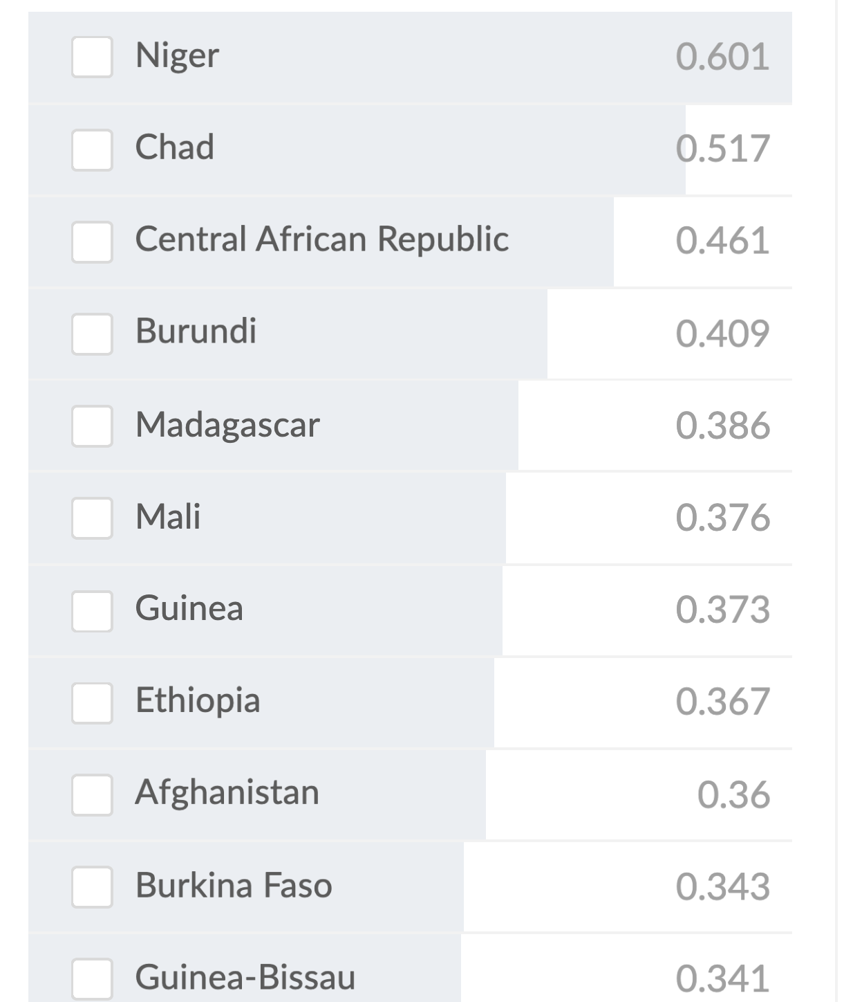 What is interesting is that Ethiopia for all its income prosperity has a huge portion of their population living in poverty with no access to basic needs. They are barely ahead of Somalia by this index.