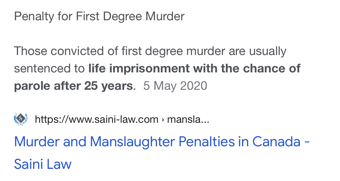 If you're POC in Canada, Crown prosecutors will lessen the charge to manslaughter or second degree murder alot of the time due to your personal upbringing and your childhood trauma. Or they send you to a healing lodge instead of prison.