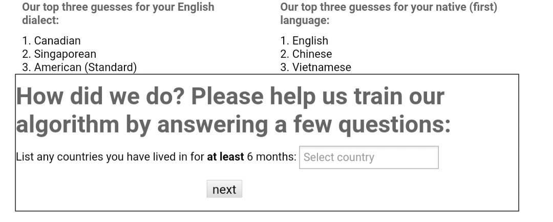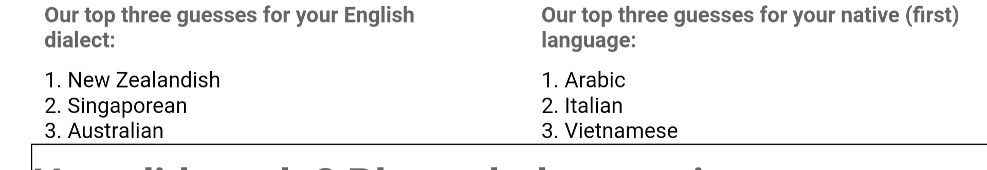 babooshke Jul 17, 2020 #28 American, Canadian, Singaporean for dialect English, Chinese, Norwegian for native language.