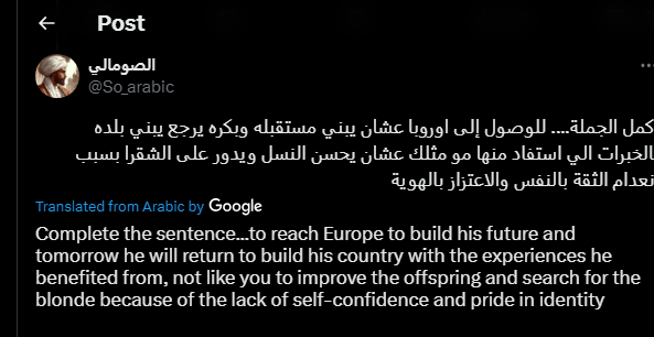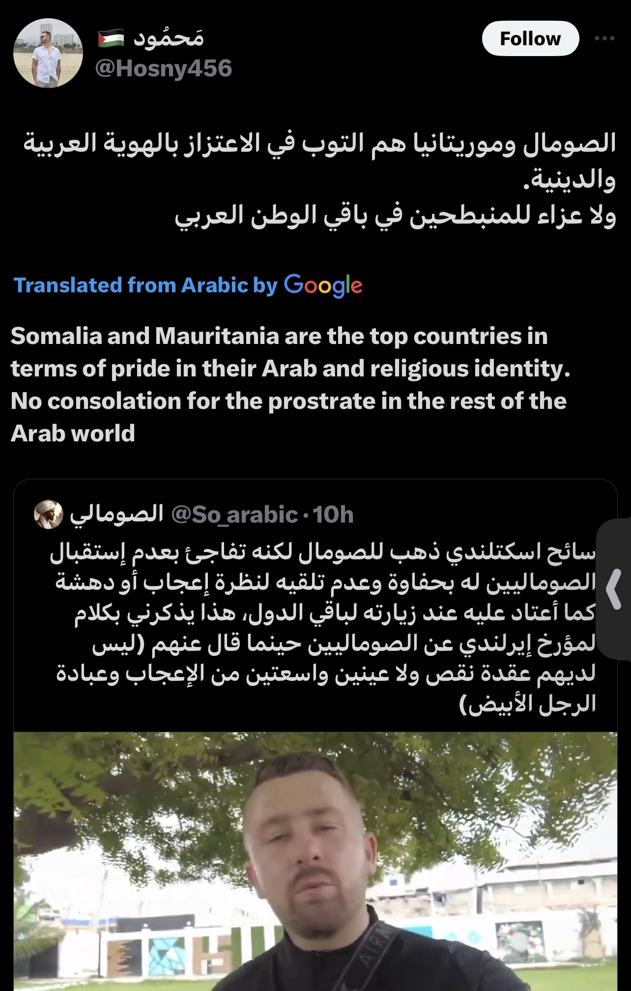 ادري اني صومالي مسلم وهذا يكفيني. لكني ابدا ما بصيح تحت كومنتاتهم اني مو عربي نفس المغاربه والزولات
