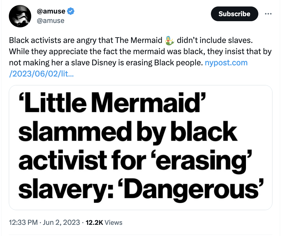 Few loud people don't represent any group of people, white love to use those minority loud folk to push their agenda, black are actually against the little mermaid as it paints image of begging white folk to be part of their traditional fairytale and depicts black people not having any culture