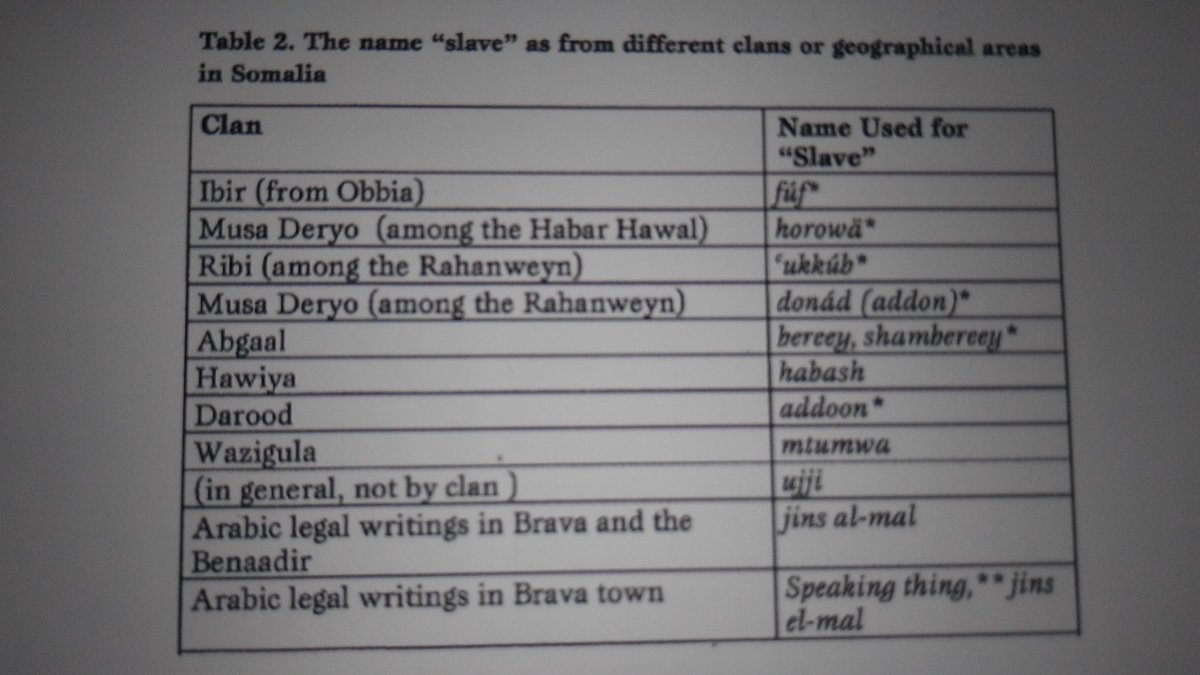 Slaves somalis are one of the only groups in the world to never have slaves we had slaves such ares the Portugese, Ethiopians nilotics and bantu but that's nothing to brag about.