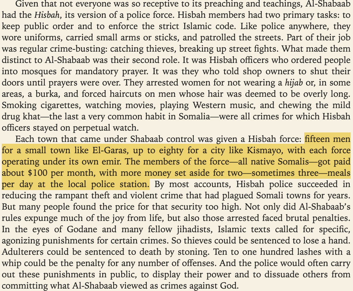 Why are our security forces so incompetent whereas AS was able to completely pacify a city as large as Kismayo with only 80 Police Officers. Smaller tuulos like Ceel Garas only need 15 police officers. Obviously AS is a satanic organization and this is not meant as praise towards them but rather a striking indictment of the incompetence of the FGS