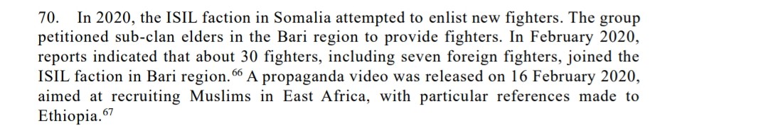 These aren't just terror cells. These are people who welcome and give manpower to terrorists based on clan, as mentioned in the UN report. When the terrorists want to recruit, they go to clan elders in puntland who give them manpower. This happend as recent as February 2020 according to the report. Very sad