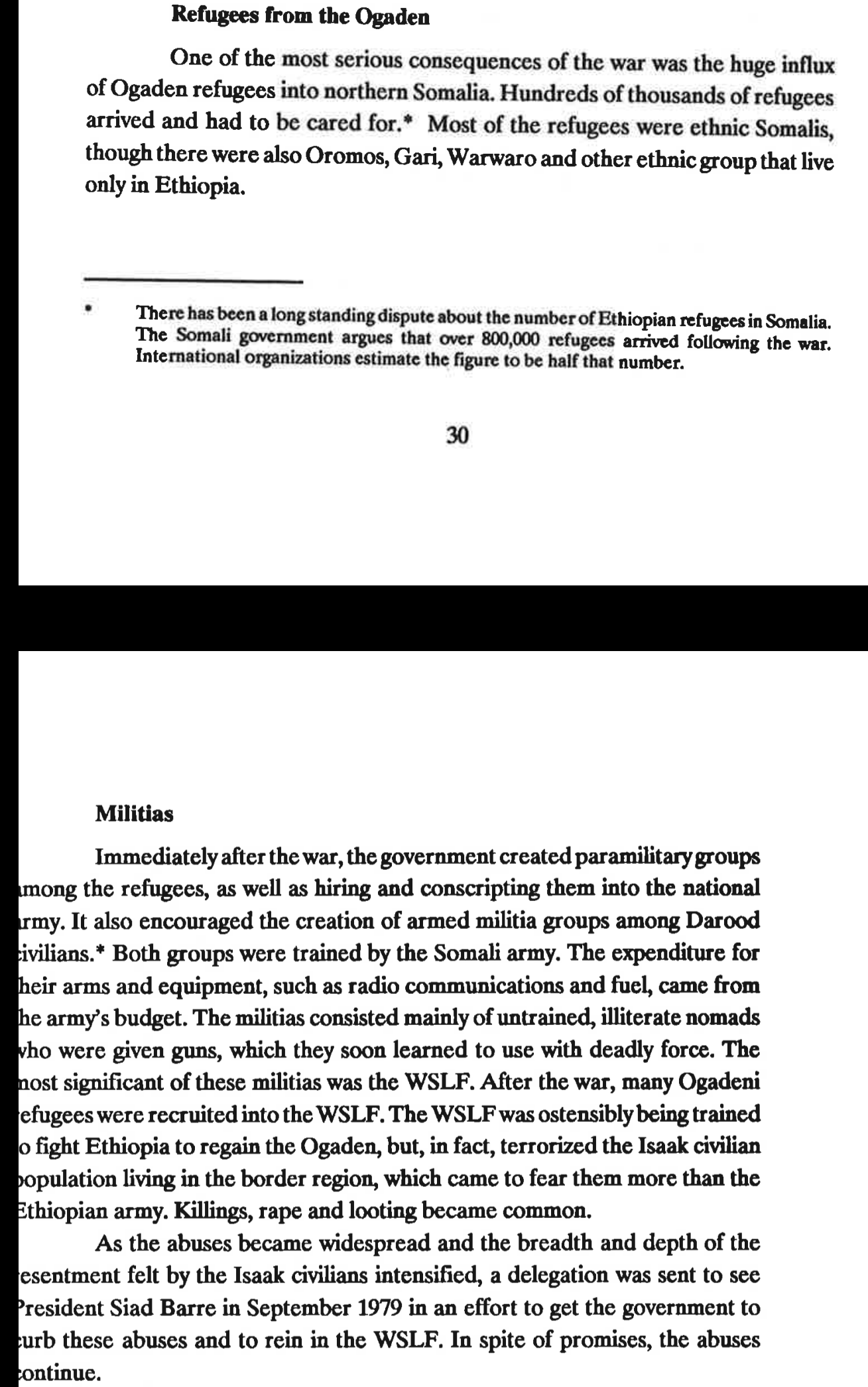 Whether it was done in Ethiopian or Somali soil is besides the point as afweyne had direct control of the wslf. Most of all, I didn't even take into account the post-77 war "refugees" that (not all I must say) were armed by the govt who attacked unarmed Isaaqs in their homeland in Somali soil, and were treated more favourably than the locals in the north.